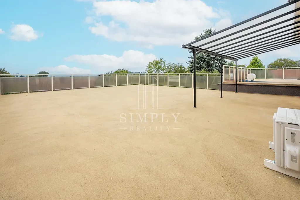 Bojler je kombinovaný na elektřinu i na ohřev z kotle. V domě jsou dvě klimatizace značky Toshiba jak na ochlazení tak na teplo ovládané ovladačem nebo telefon přes wifi. Celá terasa o rozloze 135 m2 je pokryta speciálním měkčím povrchem vhodným k dětem. Nosnost terasy je určena i k možnosti pěstování ve skleníku, nebo střednímu bazénu, je zde nádherný výhled do zeleně. V domě jsou nyní dva byty ihned k provozu, třetí byt je též možnost využívat jen wc a koupelna jsou na chodbě . Malý sál má vlastní záchody hotové a velký sál má své vlastní podlahové topení a záchody jsou ve výstavbě, kdy je již zavedena voda i odpad. Zbylý prostor je věnovaný buď jednomu bytu mezonetu nebo dvou menším bytům, kde je již rozvedená nová elektřina, voda i odpady.