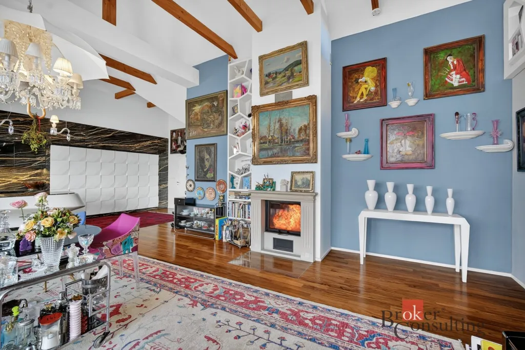 Celý byt je proveden ve vysokém standardu – podlahy z exotického dřeva, kvalitní designové materiály a precizní řemeslné zpracování vytvářejí nadčasový a elegantní prostor.