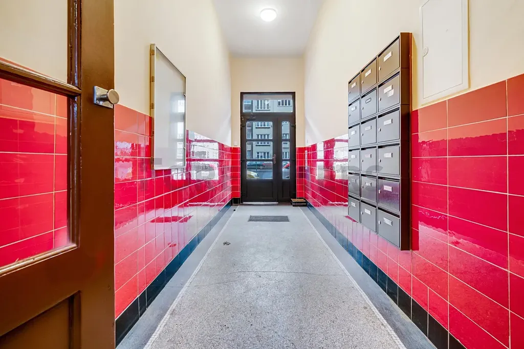 Dispozičně je byt řešen prakticky a efektivně. Obývací pokoj s kuchyňským koutem poskytuje dostatek prostoru pro každodenní život, zatímco samostatná ložnice zajišťuje klid a soukromí. Koupelna je vybavena vanou a pračkou, toaleta je oddělená, což výrazně zvyšuje komfort bydlení. Velkým benefitem je praktická spíž přímo v bytě, která nabízí dostatek úložného prostoru, a dále sklepní kóje v suterénu domu. Obyvatelé domu mohou navíc využívat společný dvorek a je možné si pronajmout parkovací místo ve dvoře.