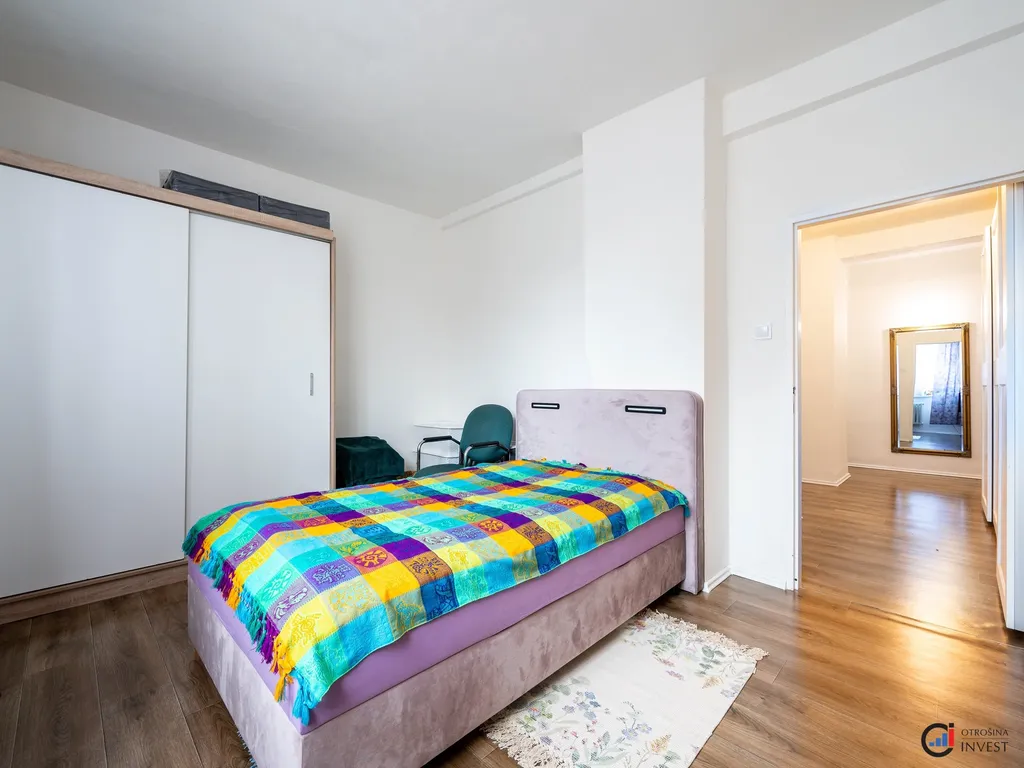 Dispozice bytu je velmi praktická a poskytuje dostatek prostoru pro rodinné bydlení i pohodlné soužití vícečlenné domácnosti. Sestává ze vstupní chodby, koupelny, samostatného WC, kuchyně, dvou samostatných pokojů a jednoho průchozího pokoje se vstupem na balkón. K bytu náleží dva sklepy, které zajistí dostatek úložného prostoru.