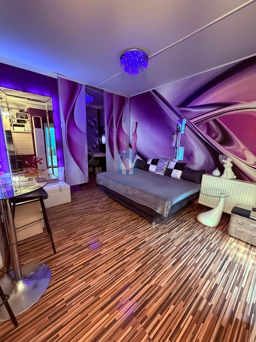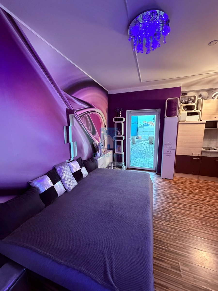 Nabízíme k pronájmu útulnou a plně vybavenou garsonku o velikosti 35 m² s prostornou terasou v ulici Koterovská v Plzni na Slovanech. Byt se nachází v přízemí a zaujme především svým pečlivě sladěným interiérem, který je laděn do elegantních fialových tónů. Celý prostor působí harmonicky a je promyšlený do posledního detailu.