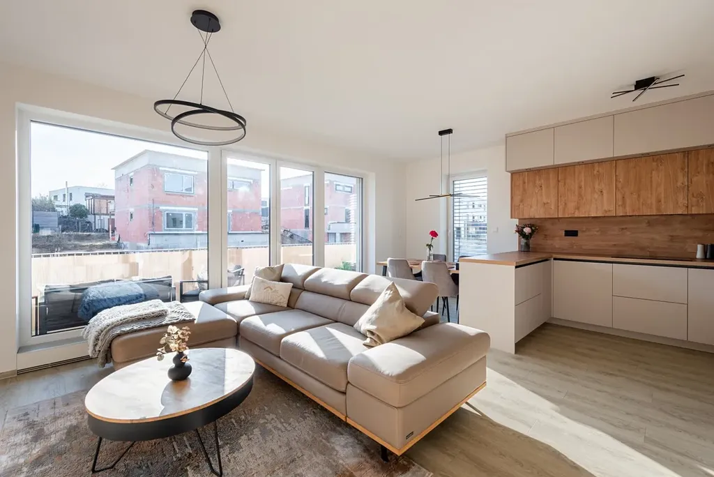 Nabízená bytová jednotka se nachází ve 2.NP třípodlažního rezidenčního viladomu z roku 2023. Byt ve vysokém standardu, designový interiér, vše na míru. Pojďme se na to podívat podrobněji.