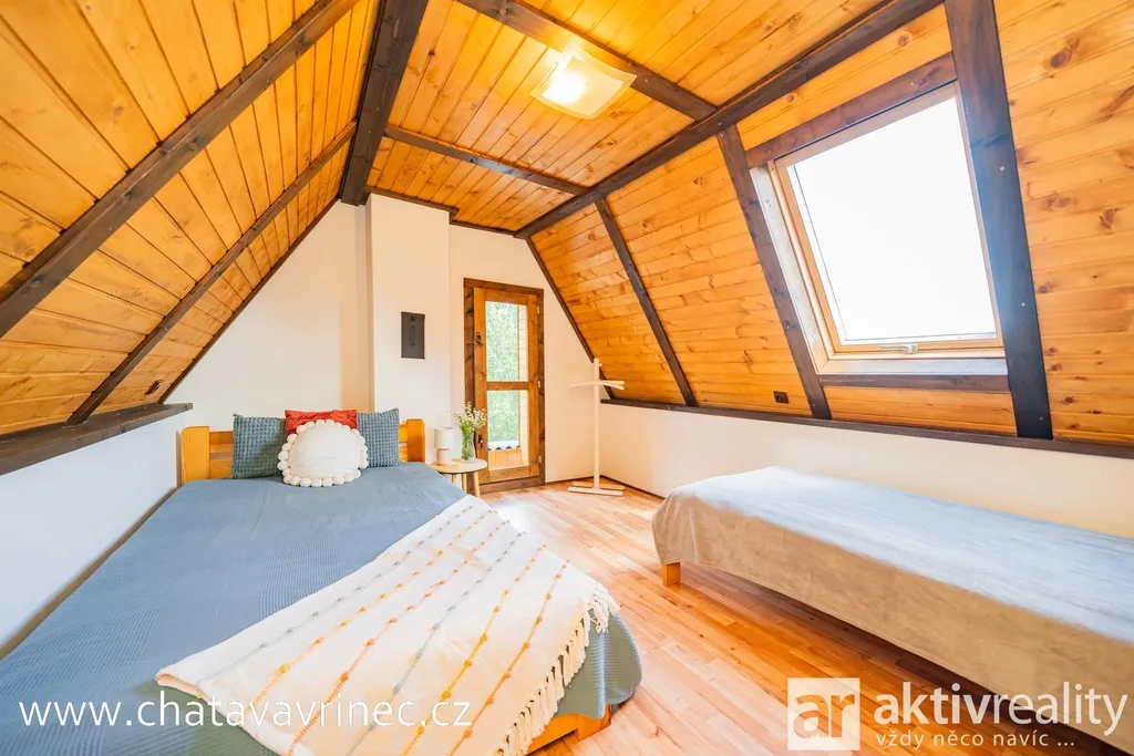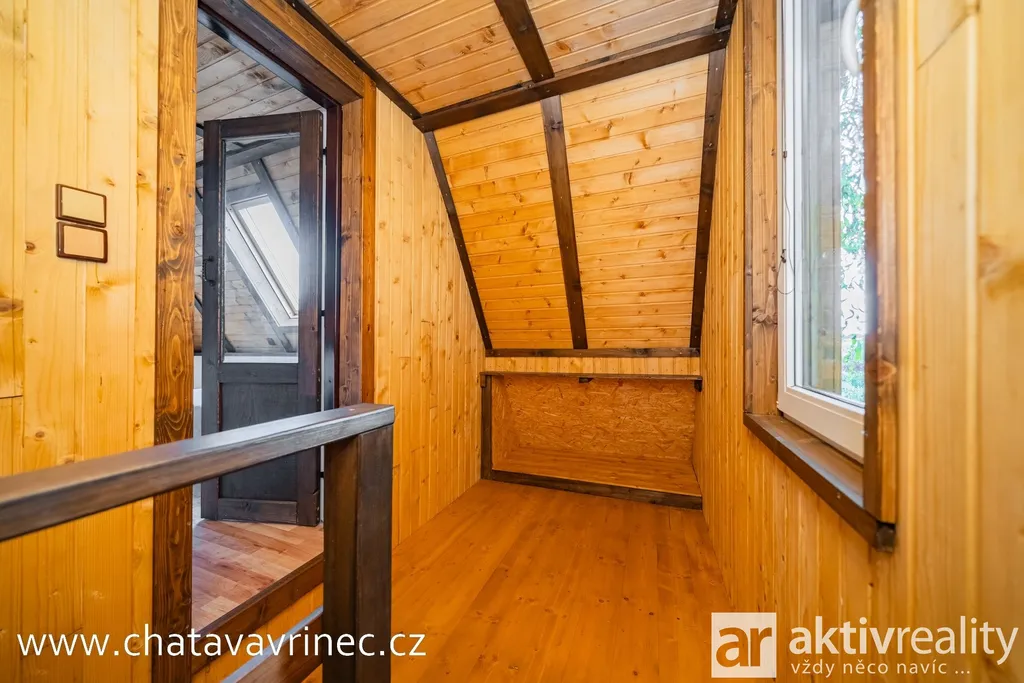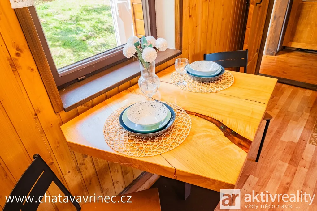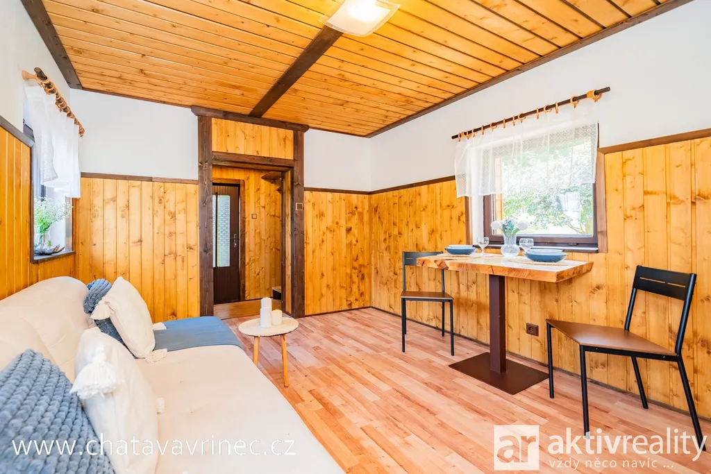 Chata prošla během posledních 3 let kompletní rekonstrukcí: nová střešní krytina, rozvody elektřiny, vody a kanalizace, podlahy, vnitřní schodiště a na míru zhotovené interiérové prvky od truhláře.