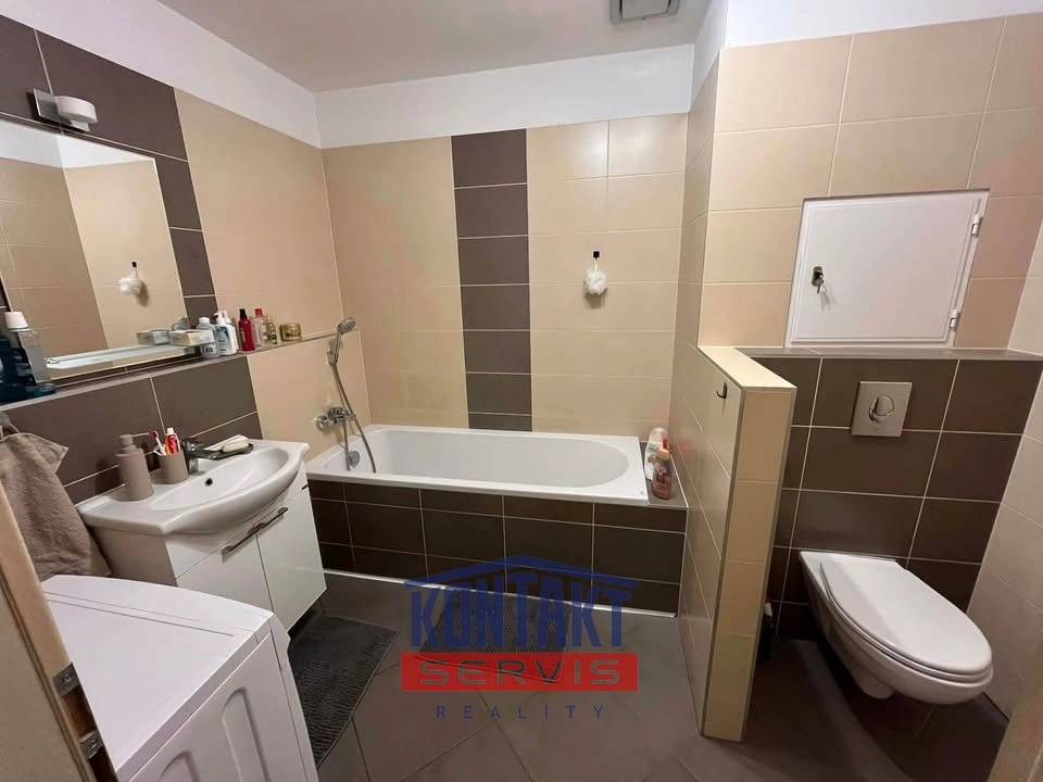 Dominantou bytu je prostorná terasa o výměře 15 m², která výrazně rozšiřuje obytný prostor a nabízí ideální místo pro relaxaci a posezení.