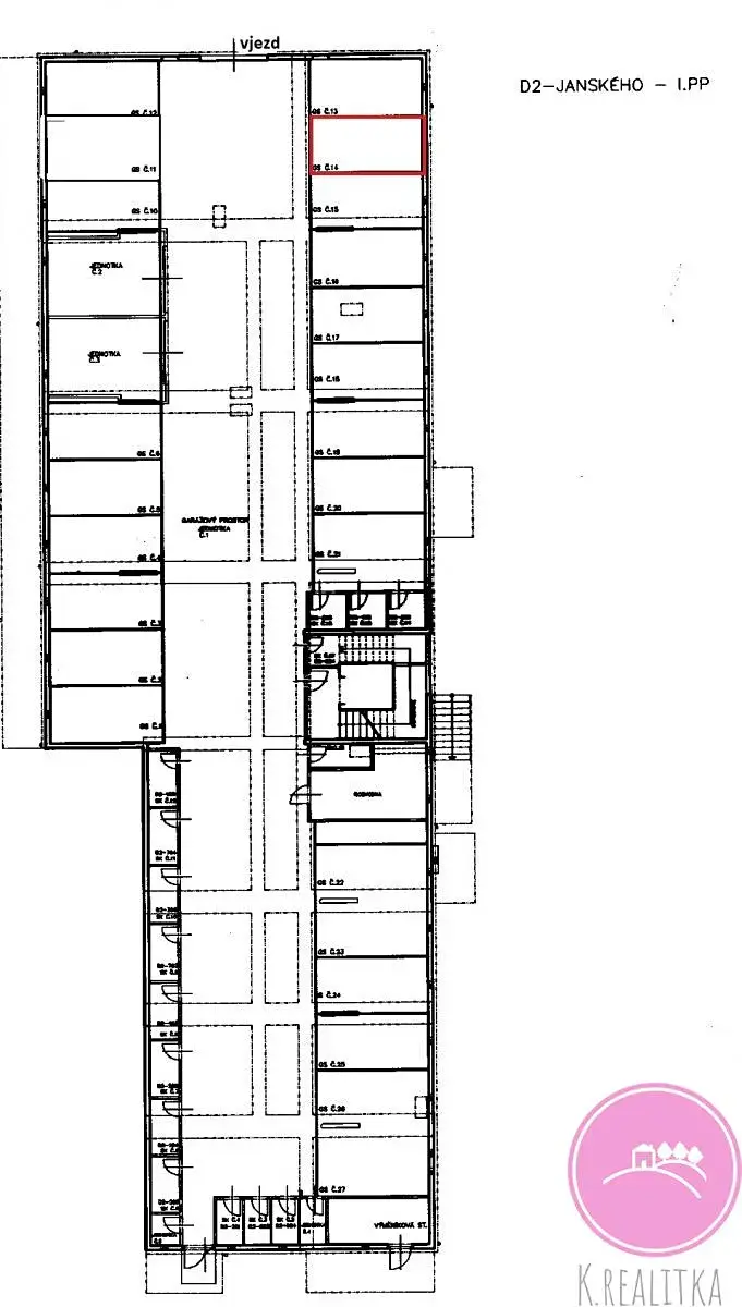 Pronájem garážového stání, Olomouc, Janského, 13 m2