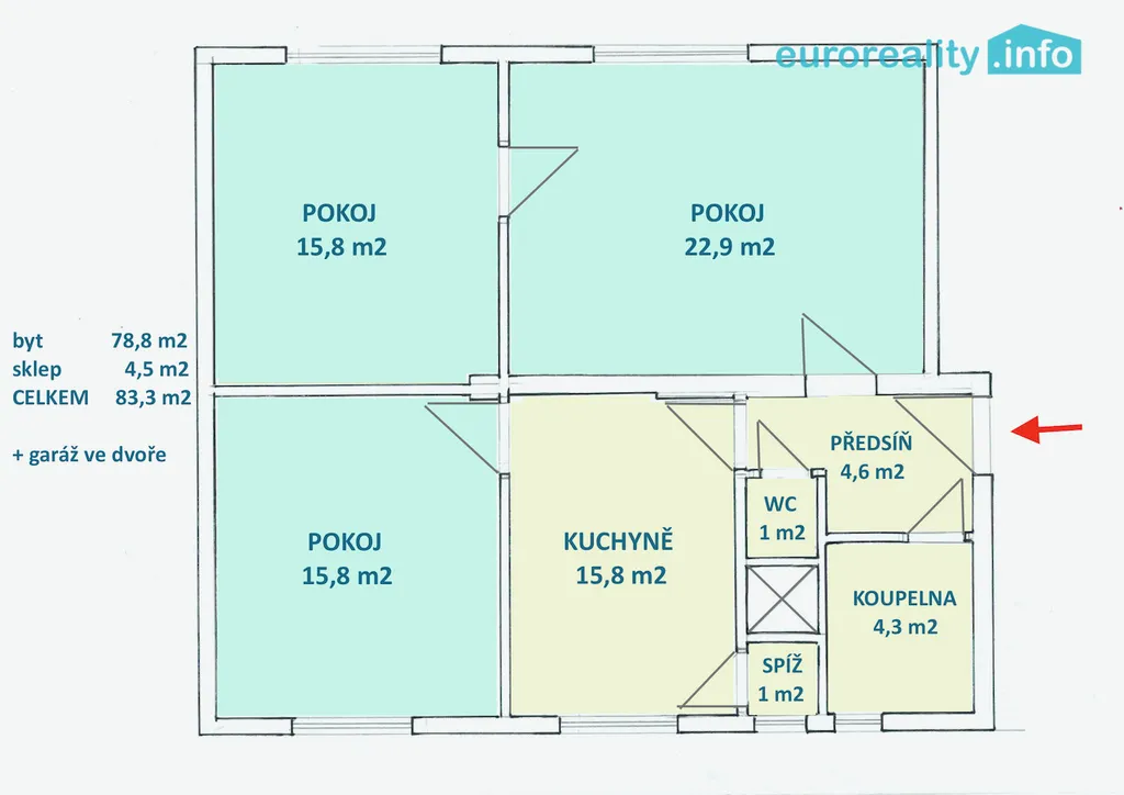 Prodej družstevního bytu 3+1 ve 2.NP malého bytového domu z 50. let, v klidné uličce nedaleko Masarykova náměstí v centru Brandýsa nad Labem. Byt má celkovou plochu 83,3 m2 včetně příslušenství (sklep 4,5 m2), historicky k němu patří i plechová garáž ve dvoře (cca 20 m2). Orientace JV (2 pokoje směrem do dvora) a SZ (kuchyně a 1 pokoj do ulice). Tento prostorný byt je ideální volbou pro rodiny s dětmi, které hledají příjemné bydlení v klidné lokalitě, ale i pro investory - byt lze v souladu se stanovami podnajmout.