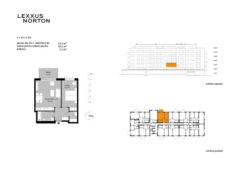 K prodeji nabízíme moderní byt 2+kk o výměře 51,5 m2 s balkonem v nově postaveném projektu, který byl zkolaudován v roce 2022. Byt se nachází ve 2. patře a díky západně orientovanému balkonu nabízí dostatek slunce k odpolednímu relaxu. Nemovitost disponuje obývacím pokojem spojeným s kuchyní, ložnicí, prostornou komorou a koupelnou. K bytu náleží širší parkovací stání a sklep.