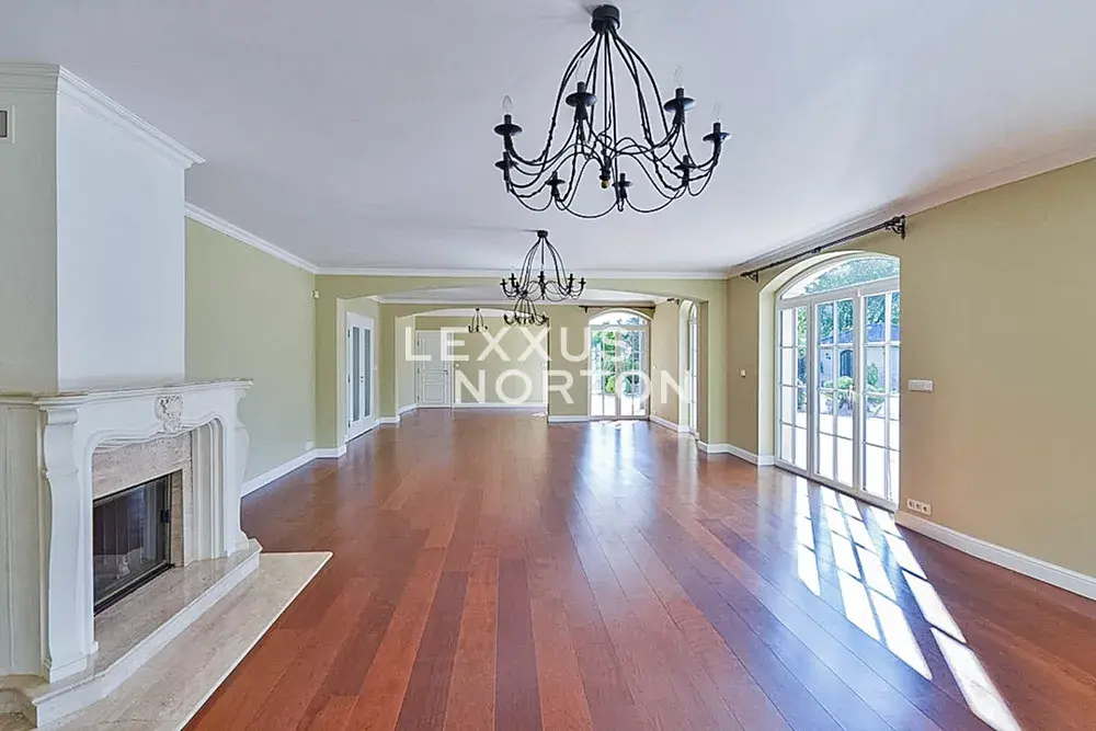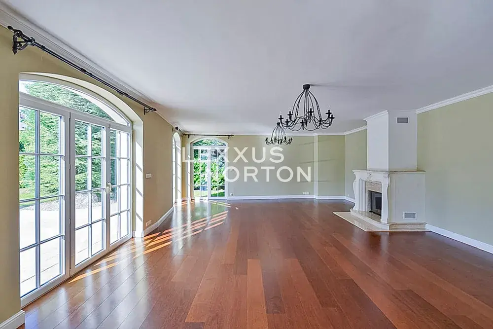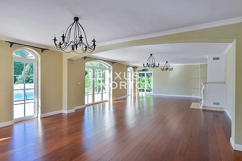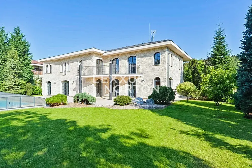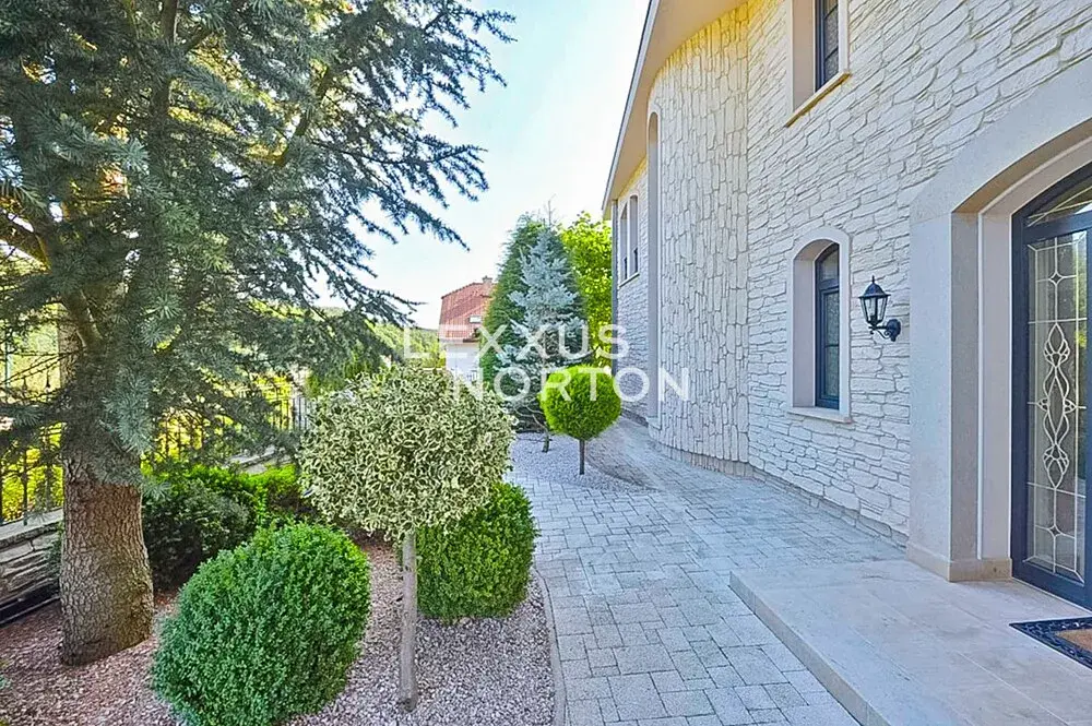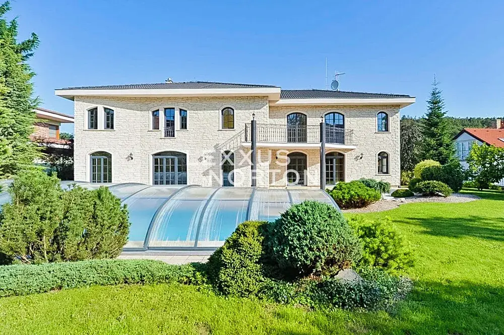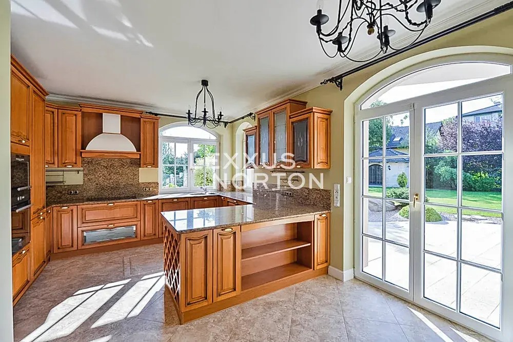 V 1. nadzemním podlaží najdete velký obývací pokoj s krbem, moderní kuchyni s jídelnou a spíž, ve 2. nadzemním podlaží pak 7 ložnic, 5 koupelen a šatnu. K dispozici jsou také 2 terasy, balkon, prádelna, vířivka, zahradní domek (5×4 m) a garáž pro 2 vozy.
