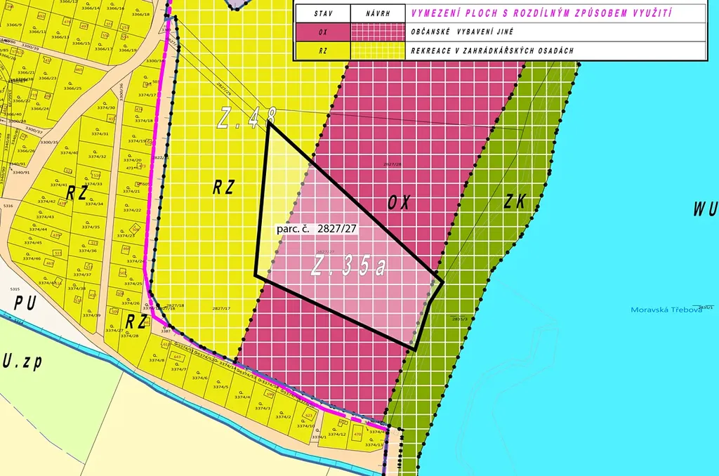 Nabízený pozemek leží na jižním okraji Moravské Třebové u stejnojmenné vodní plochy.