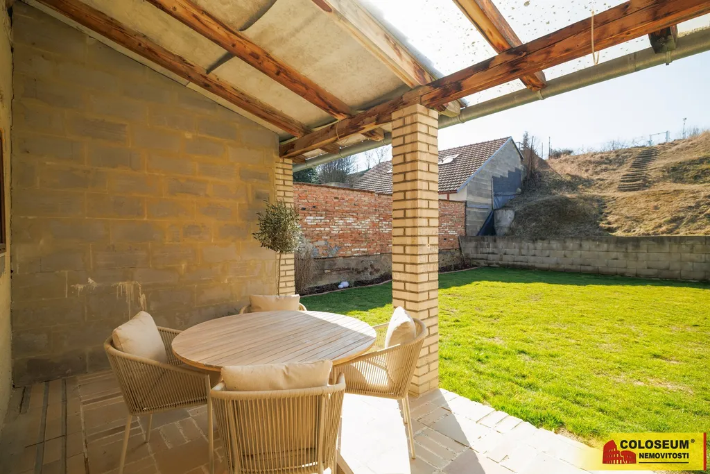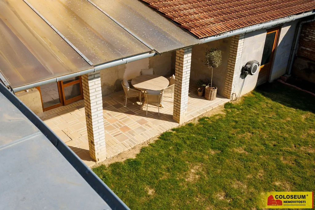 Pod plánovanou terasou se navíc nachází letní kuchyň napojená na inženýrské sítě (voda, odpady, elektřina), která může sloužit jako společenské zázemí, hobby dílna nebo prostor pro drobné podnikání.