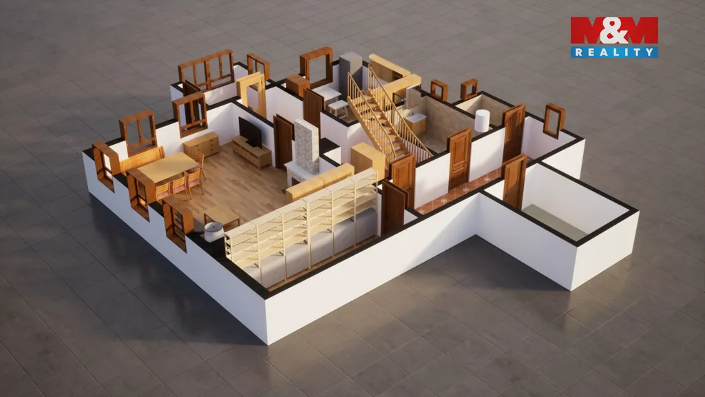 Dům prošel rekonstrukcí a je připraven k okamžitému užívání. V přízemí se nachází obývací pokoj s krbem, kuchyně, koupelna a samostatné WC. V patře jsou dvě světlé ložnice s výhledem do zeleně. Masivní nábytek je součástí prodeje a podtrhuje horský charakter nemovitosti, vyvložkovaný komín navíc zajišťuje bezpečný provoz krbu.