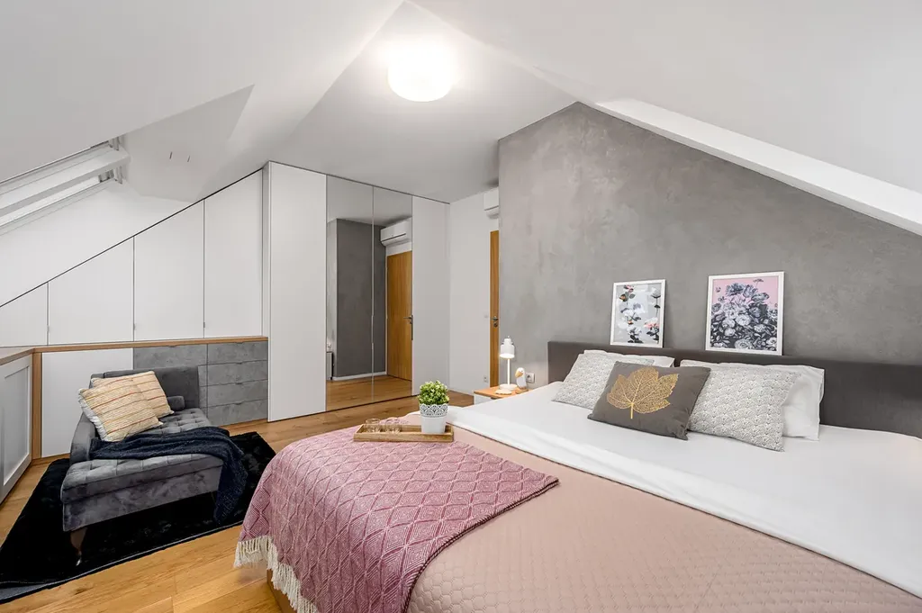 Důraz byl kladen také na dostatek úložných prostor. V bytě jsou instalovány vestavěné skříně a praktické úložné systémy, které zajišťují maximální komfort každodenního bydlení. Součástí bytu je rovněž samostatná komora vybavená pračkou.