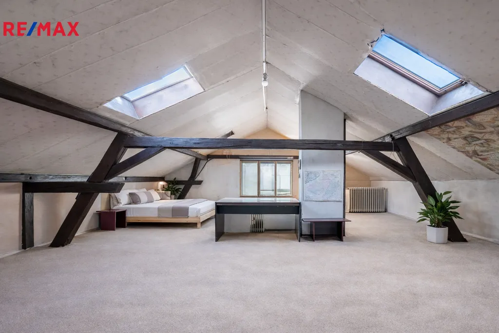 • prostorná půda vhodná k vestavbě (např. ateliér)