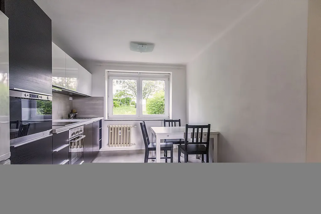Byt se nachází v klidném bytovém domě obklopeném zelení. K dispozici je vybavená kuchyň (varná deska, trouba, mikrovlnná trouba, lednice s mrazákem, jídelní stůl) a součástí vybavení je také pračka. K bytu náleží sklep.