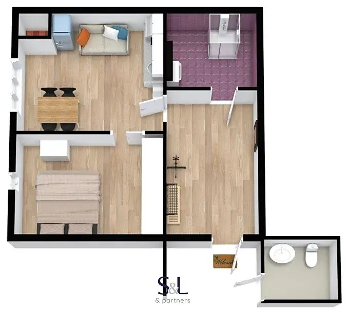 Byt je vhodný pro jednotlivce nebo pár, kteří hledají klidné bydlení v centru města.
