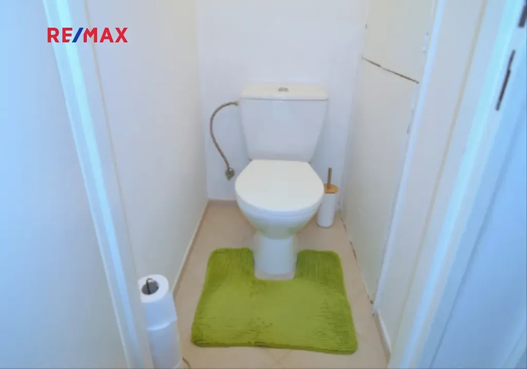WC je samostatné, v koupelně je prostorný sprchový kout, umyvadlo a zrcadlová skříňka.