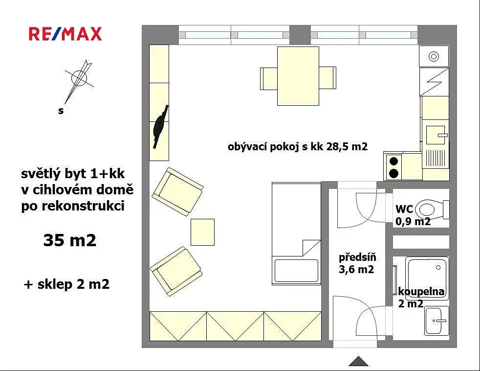 K bytu se nabízí i sklep v suterénu, kam se pohodlně vejdou i dvě jízdní kola.