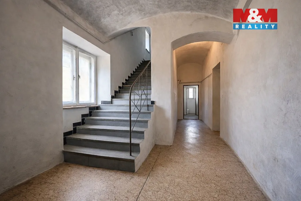 Budova disponuje velkými a světlými místnostmi, které poskytují dostatek prostoru pro různé úpravy dle představ nového majitele. Součástí nemovitosti je také garáž, parkovací stání přímo u domu až pro 4 automobily, sklepní prostory a velká půda, která nabízí ideální možnost vybudování podkrovních bytů nebo dalších obytných prostor.