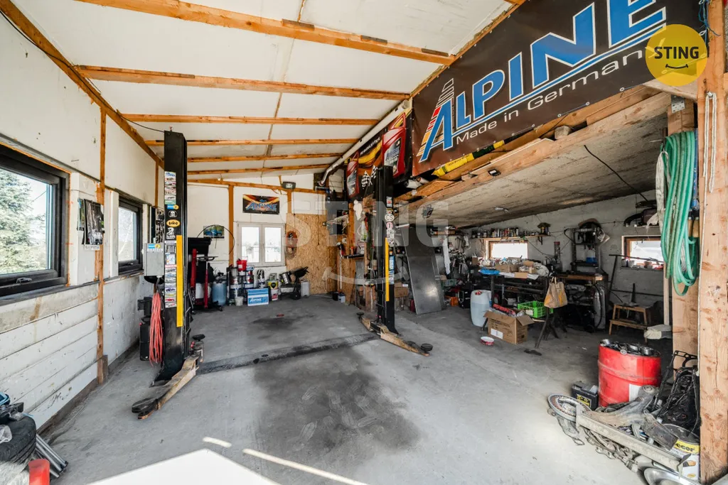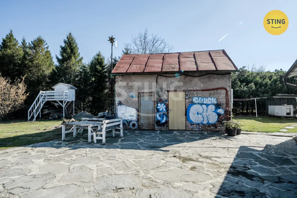 Dům o užitné ploše 162 m² stojí na rovinatém pozemku o rozloze 2.286 m², který zahrnuje krásně udržovanou zahradu s bazénem + písková filtrace, s houpačkami a dětským domečkem, se zděnou garáží (se zvedákem na auta s nosností 3 t), se zděnou hospodářskou budovou s veškerým zařízením pro provoz 20ti fotovoltaických panelů (FVE), umístěných na střeše rodinného domu. Tímto se stává tato nemovitost moderním a úsporným bydlení z hlediska energetické nezávislosti, ale i legislativních požadavků. Dům je zděný (zateplený 14 cm polystyrénem) s kamennými základy z pískovce, střešní krytina je šindelová (tepelná izolace 35 cm minerální vata), okna plastová dvojkomorová.