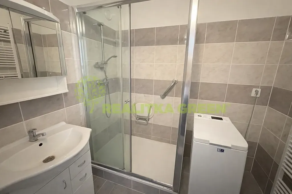 Dispozičně: prostorná vstupní chodba se šatnou, kuchyň s jídelním koutem, kuchyňská linka s elektrickým sporákem a elektrickou troubou, obývací pokoj, ložnice se vstupem na lodžii odkud je krásný výhled na město a pokoj, který lze využít jako dětský pokoj. Koupelna se sprchovým koutem a samostatné WC.