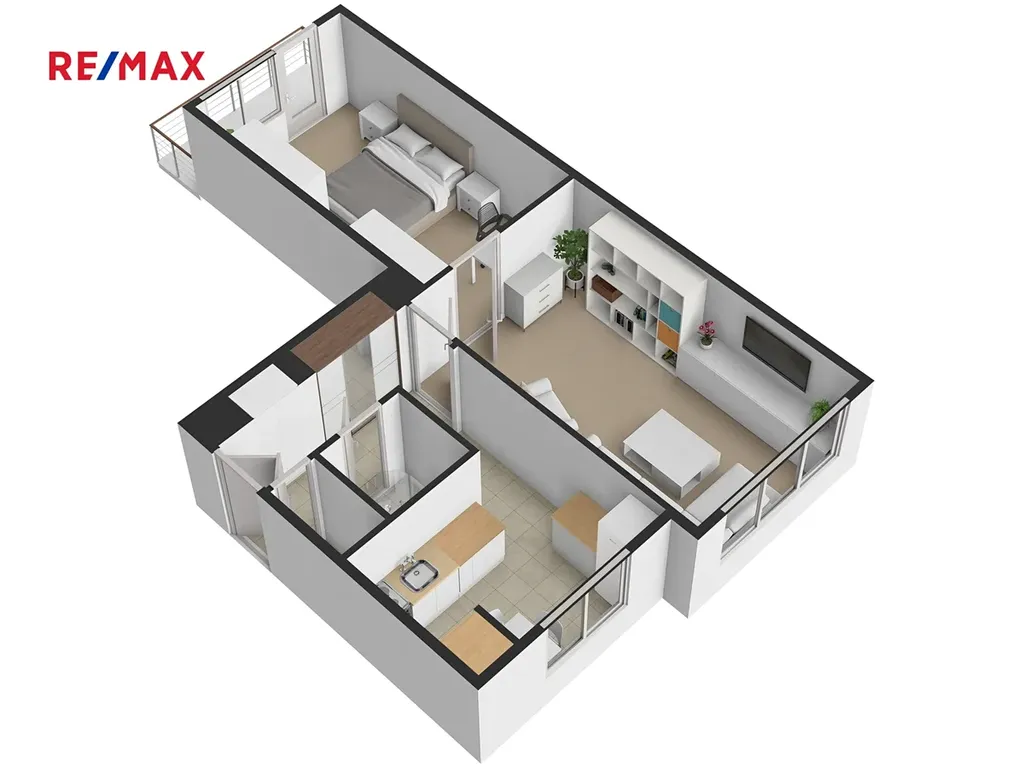 Dispozice bytu zahrnuje obývací pokoj o velikosti 19 m² s výhledem do klidného vnitrobloku, prostornou ložnici o velikosti 15 m² se vstupem na balkon a kuchyni s kuchyňskou linkou. Součástí bytu je také koupelna se sprchovým koutem a samostatná toaleta. Chodba bytu nabízí dostatek prostoru pro vestavěné skříně a další úložné řešení.