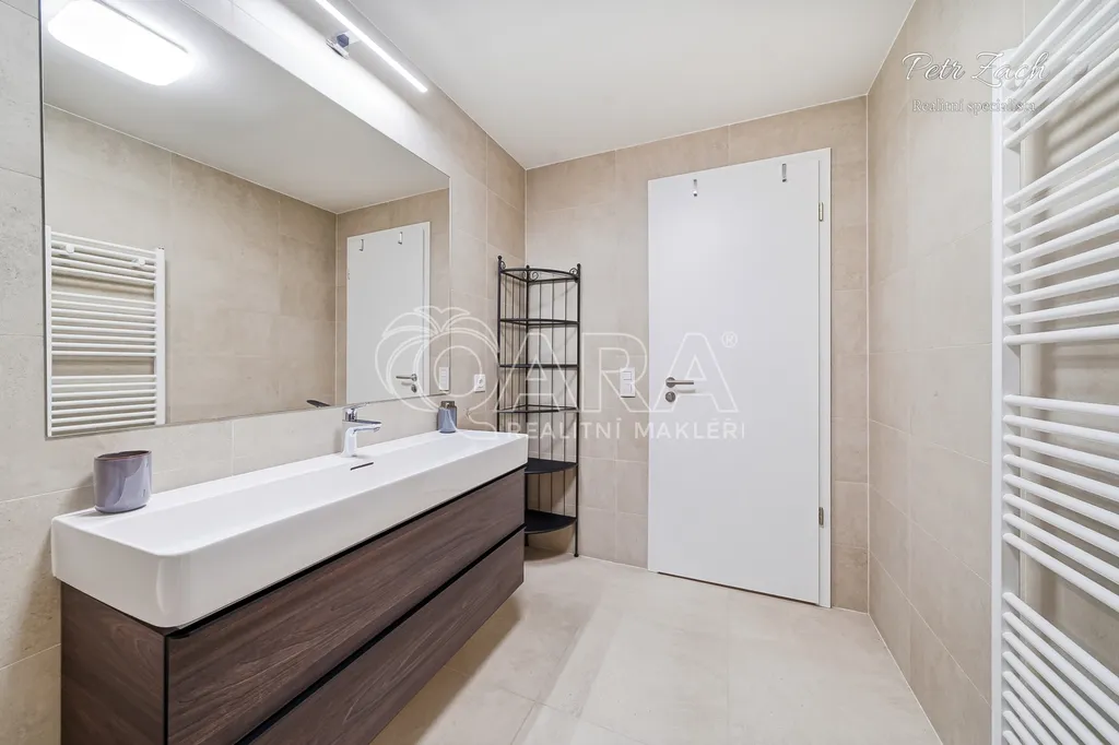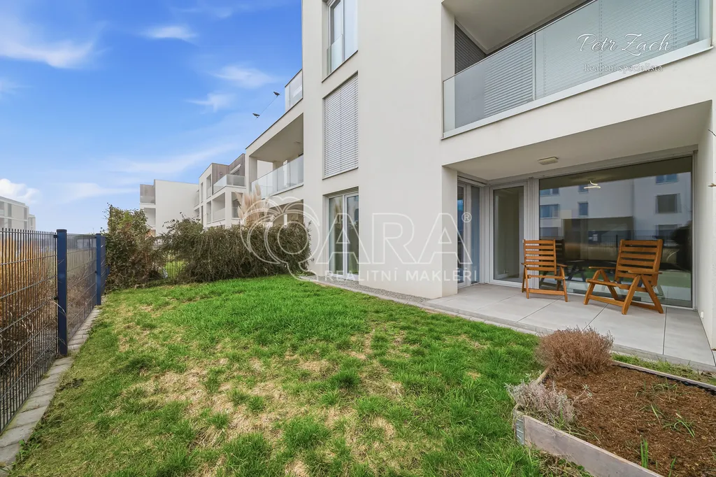 Dominantou bytu je prostorný obývací pokoj s kuchyňským koutem, který je vybaven kuchyňskou linkou se spotřebiči (myčka, trouba, lednice). Díky velkým oknům je prostor krásně prosvětlený a působí velmi vzdušně. Ložnice nabízí dostatek soukromí a klidu. Velkým benefitem bytu je také prostorná šatna, která poskytuje dostatek úložného prostoru. Koupelna je moderně řešená a součástí bytu je také samostatné WC. Velkou výhodou bytu je přímý vstup na venkovní prostor (zahrádka/terasa), který poskytuje ideální místo pro odpočinek, ranní kávu nebo posezení s přáteli.