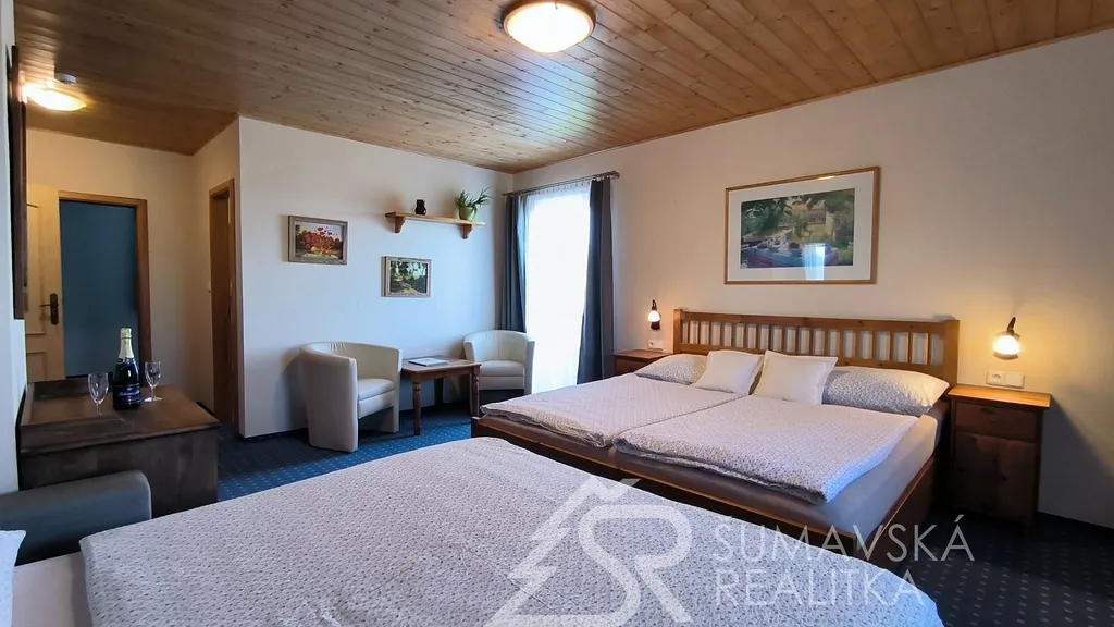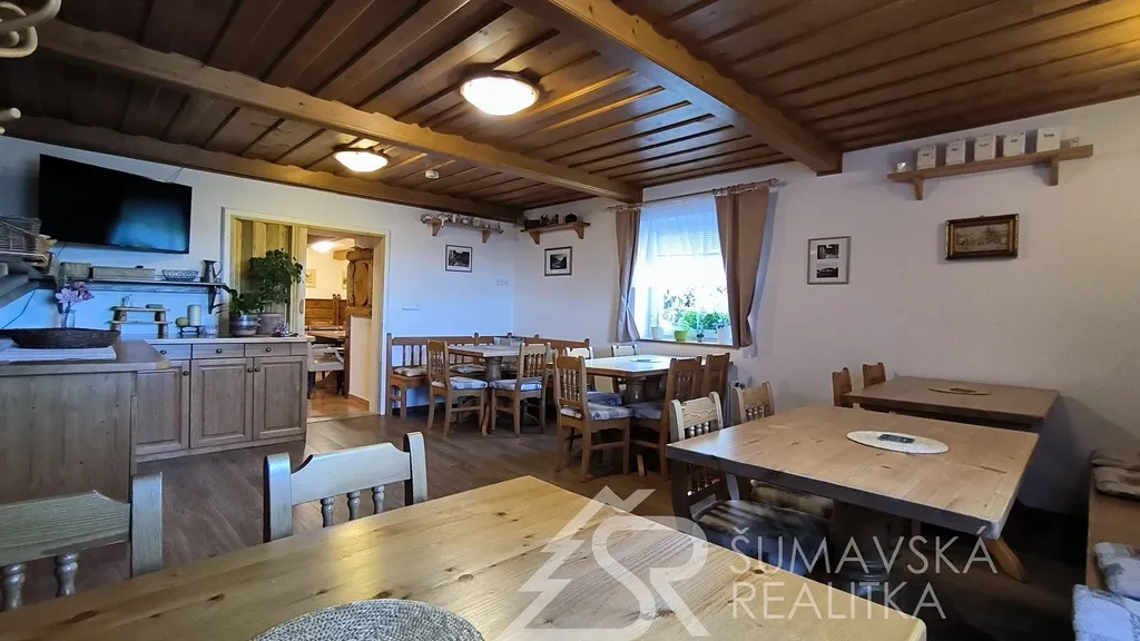 Nabízíme zavedený, na dvě budoucí sezóny plně vyprodaný penzion na Šumavě s pozemkem o celkové výměře 6.269 m², bez jakékoliv potřebné investice či nutnosti změny. Zrekonstruován byl v roce 2014 a postupně dál modernizován. Každý pokoj má svoje sociální zařízení i kuchyňskou linku vybavenou myčkou na nádobí. Kromě budovy a pozemků získáte i know-how majitelky.