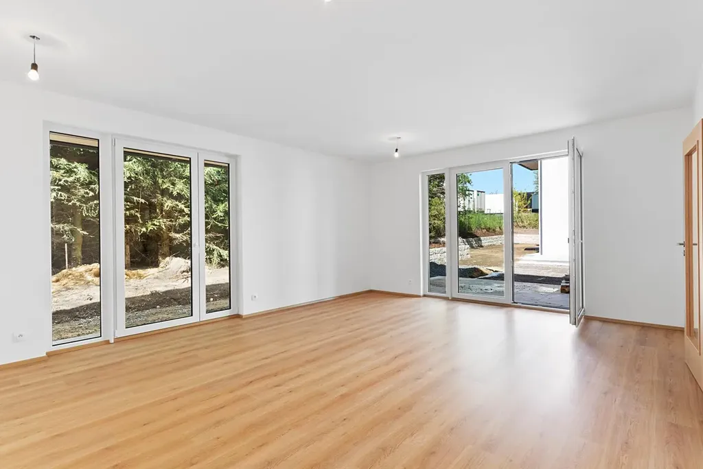 Díky francouzským oknům s izolačními trojskly je tento byt nádherně přirozeně prosvětlen a umožňuje vstup na zahradu ze všech místností. Byt je vybaven podlahovým vytápěním s termostatem v každé místnosti, což vám umožní efektivní regulaci teploty podle vašich potřeb. Kuchyňská linka není součástí vybavení, můžete si ji navrhnout přesně podle vlastních představ a stylu. K bytu náleží prostorná sklepní kóje umístěna v 1. podzemním podlaží.