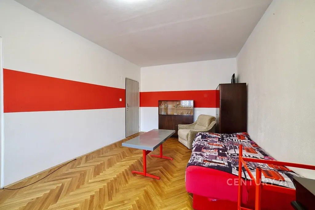 Dominantou bytu je prostorný obývací pokoj propojený s kuchyní, který tvoří světlé centrum domova. další pokoj je neprůchozí a může sloužit jako ložnice či dětský pokoj. Prostorná chodba slouží jako bonus a zajistné oceníte také komoru navíc.