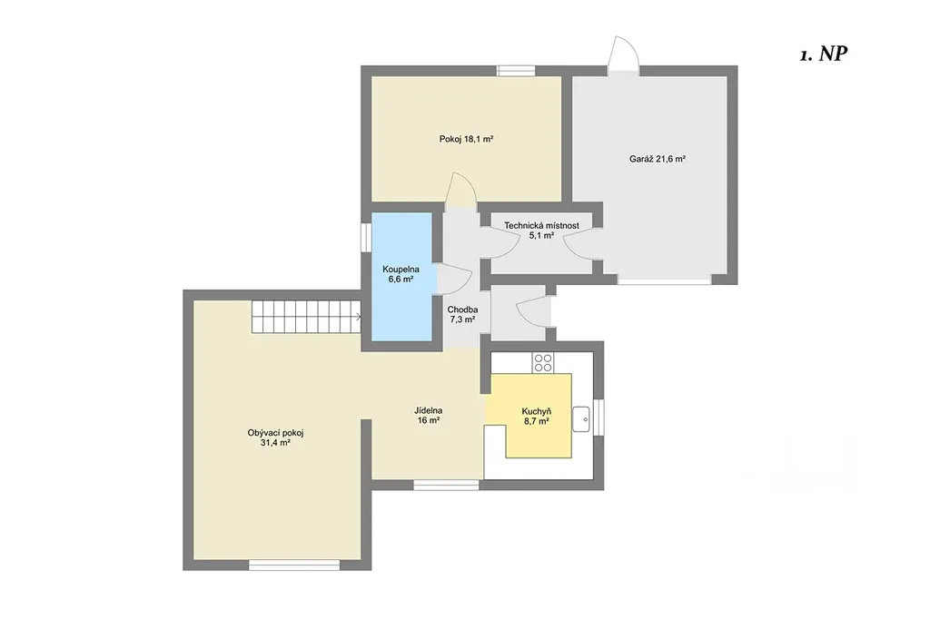 Technickou místností v přízemí, kde je umístěn elektrokotel projdeme do garáže.