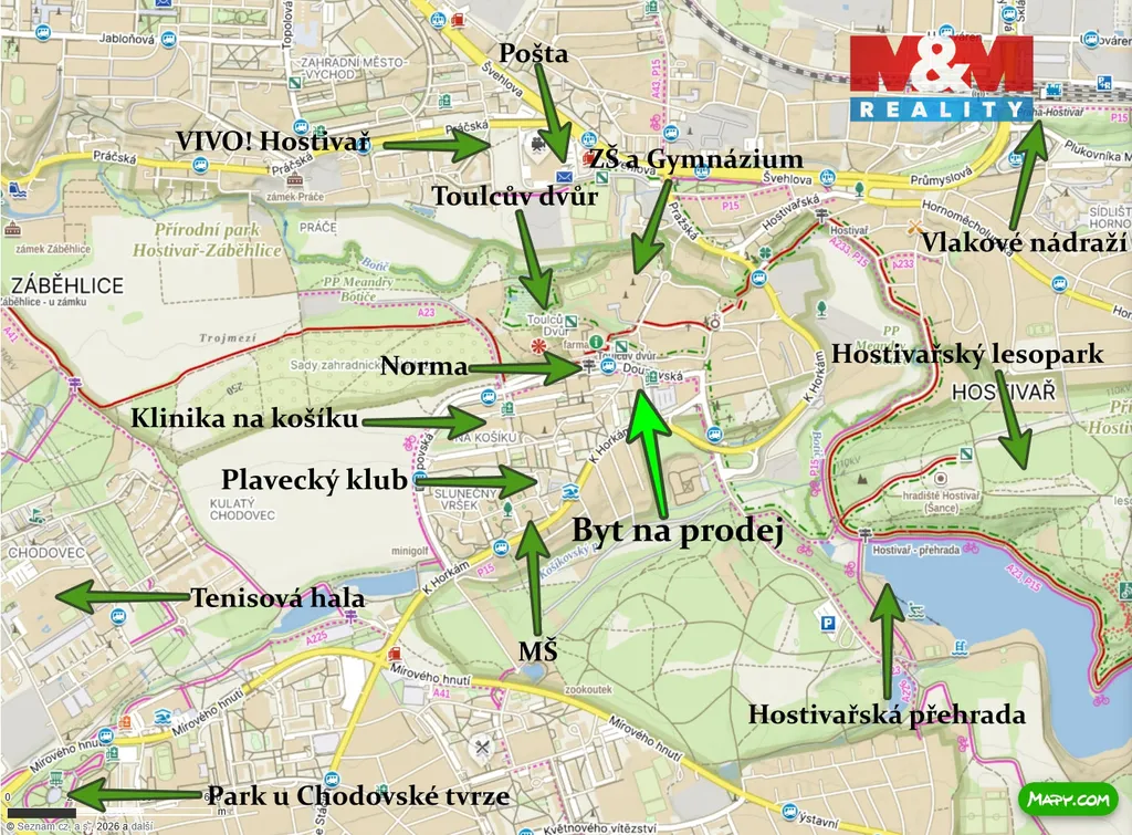 Nabízím k prodeji velmi příjemný a prostorný byt o dispozici 3+kk s užitnou plochou 63 m² a lodžií, který se nachází v 1. patře udržovaného panelového domu s výtahem ve vyhledávané lokalitě Praha 15 - Košík. Tato lokalita je oblíbená především díky kombinaci kompletní občanské vybavenosti, množství zeleně a velmi dobré dostupnosti do centra Prahy. Byt prošel větší rekonstrukcí v roce 2024, která přinesla modernější a komfortnější bydlení. Byla vybudována nová koupelna s toaletou a sprchovým koutem, proběhla rekonstrukce kuchyně a zároveň byly částečně provedeny nové rozvody elektřiny. Dispozice bytu nabízí praktické a pohodlné bydlení pro rodinu, pár i jako investici k pronájmu. Obývací pokoj je propojen s kuchyňským koutem, což vytváří příjemný prostor pro každodenní život i setkávání s rodinou či přáteli. Další dva pokoje mohou sloužit jako ložnice, dětský pokoj nebo pracovna. Byt je v osobním vlastnictví a prodává se plně vybavený, což umožňuje okamžité nastěhování. Kontaktujte nás.