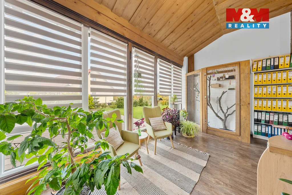 Dům se skládá z dispozice 2+kk se dvěmi koupelnami a prostornou zimní zahradou. Dále je zde prostorná stodola o ploše cca 150 m², která je vhodná například i pro podnikatelskou činnost. Vytápění je řešeno třemi způsoby: elektrokotlem, krbovými kamny a podlahovým topením. Velkou výhodou této nemovitosti je výkonná fotovoltaická elektrárna. Rodinný dům stojí na rozlehlém pozemku o výměře 2 307 m². Zahrada je převážně rovinatá, což nabízí mnoho možností pro zahradničení, relaxaci či rodinné aktivity. Dále je na pozemku vybudované jezírko. Nemovitost umožňuje okamžité nastěhování nebo úpravy dle vlastních představ. Ideální pro ty, kteří hledají harmonii přírody v dosahu města. Pro více informací a domluvení prohlídky kontaktujte makléře. Optimální financování Vám zdarma zajistí naši hypoteční specialisté.