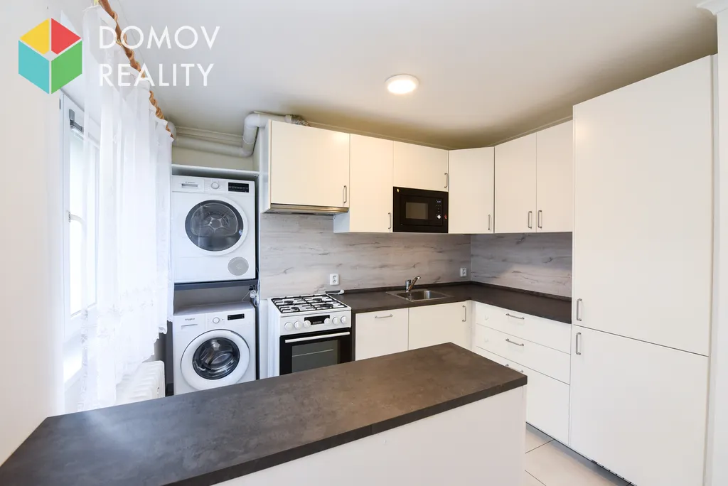 Součástí prodeje je vybavená kuchyňská linka, která disponuje lednicí s mrazákem, myčkou, mikrovlnnou troubou a plynovým sporákem. Dále je k dispozici pračka, sušička, pohodlný gauč, velkoplošná televize s obývací stěnou, rám postele (bez matrací), dvě skříně a komoda. Byt nabízí dostatek úložného prostoru díky dvěma sklepům.