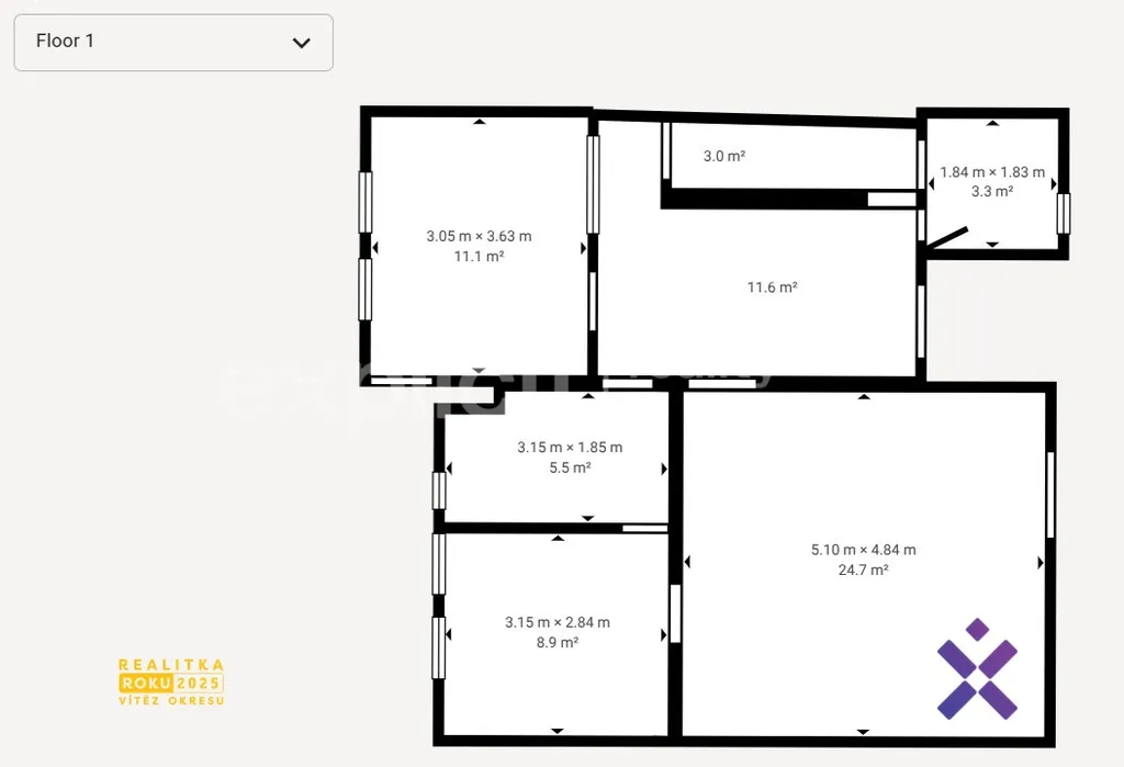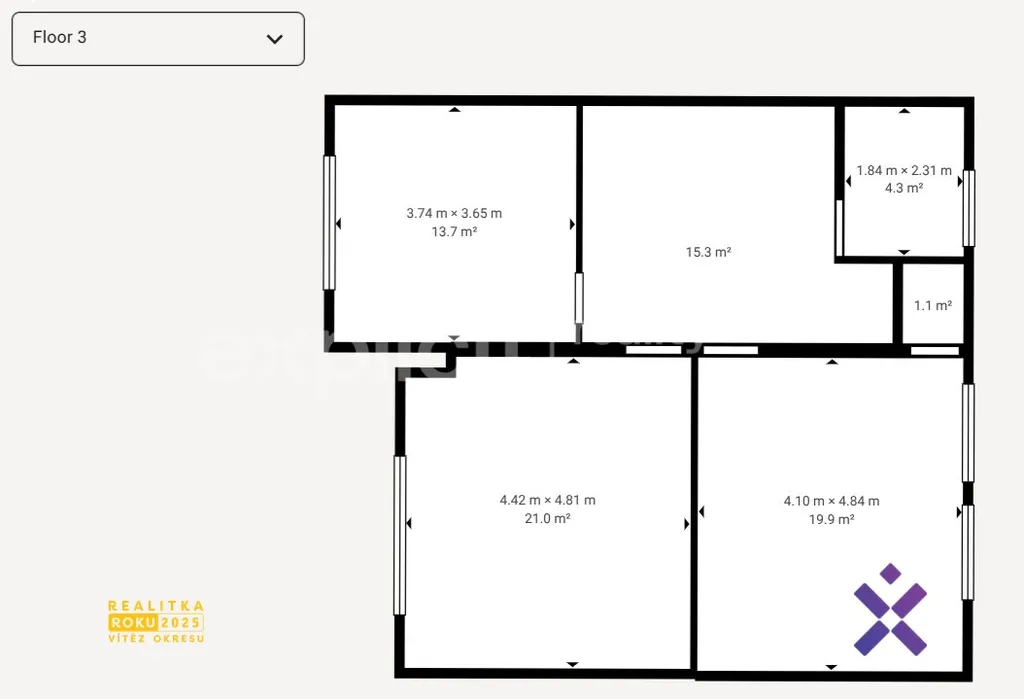 Dům disponuje dalšími dvěma podlažími s prázdnými pokoji připravenými k úpravám. Každé z pater má zhruba 60m² a stávající dispozici 3+1.