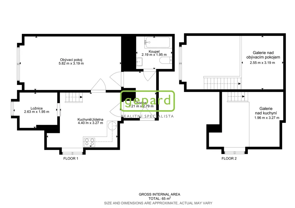 pokoj 17,81 m2 + dřevěná galerie cca 8 m2