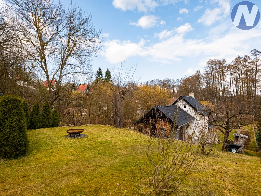Zahrada poskytuje dostatek soukromí i prostoru pro odpočinek. Velkým benefitem je vlastní malý rybníček, který dodává místu jedinečnou atmosféru. Nechybí ani přístřešek pro posezení a ohniště ideální pro letní večery.