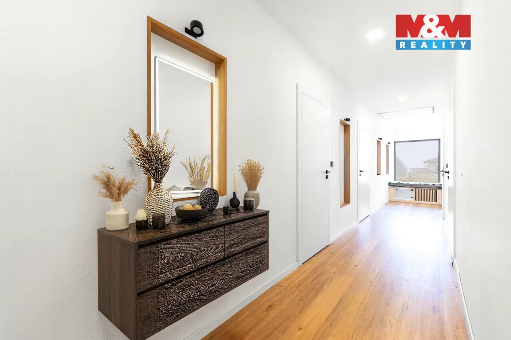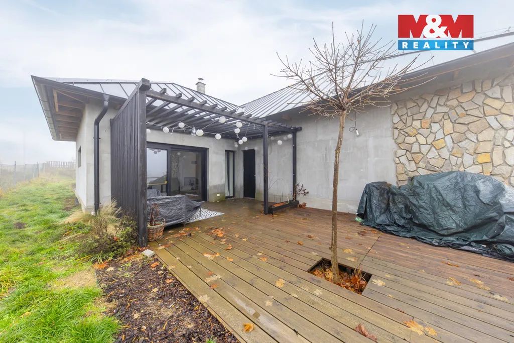 Ve výhradním zastoupení nabízíme k prodeji bungalov z roku 2022. Předností nemovitosti je zejména energetická náročnost A, podlahové vytápění, rekuperace vzduchu, vinylové podlahy, koupelna s osvětlením "noční nebe", moderní kuchyně, krbové kamna, ateliér, integrovaná garáž pro dvě auta, dílna, dvě půdy. Pro chvíle odpočinku můžete využít krytou terasu s pergolou, venkovním grilem a posezením. Zahrada má úctyhodných 915 m2. Pro její závlahu se využívá retenční nádrž o 10 m3. Ideální pro rodinný život. V obci je základní i mateřská škola, pošta, potraviny, hostinec, dětské hřiště. Dojezd na D1 je cca 15 min. Doporučujeme osobní prohlídku v této nové a moderní zástavbě na okraji obce. Pro více informací volejte RK. Zajistíme financování i pojištění nemovitosti.