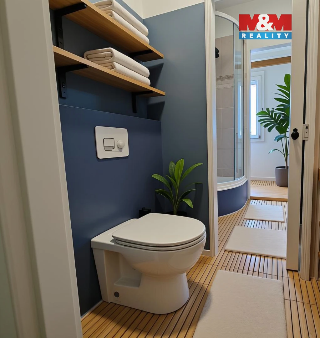 Výhodou je dostatek úložného prostoru – k dispozici prostorná komora přímo v bytě (typ walk-in), další komora na chodbě a samozřejmostí je také sklepní kóje. V domě lze využívat společné prostory, jako kolárnu a kočárkárnu.