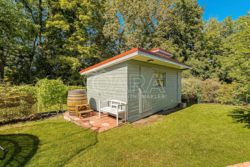 Velkou předností je upravená zahrada s automatickou závlahou, saunovým domkem a příjemným zázemím pro relax i společná setkání.
