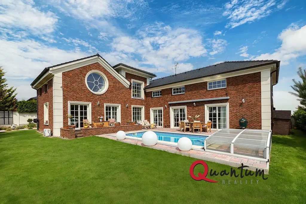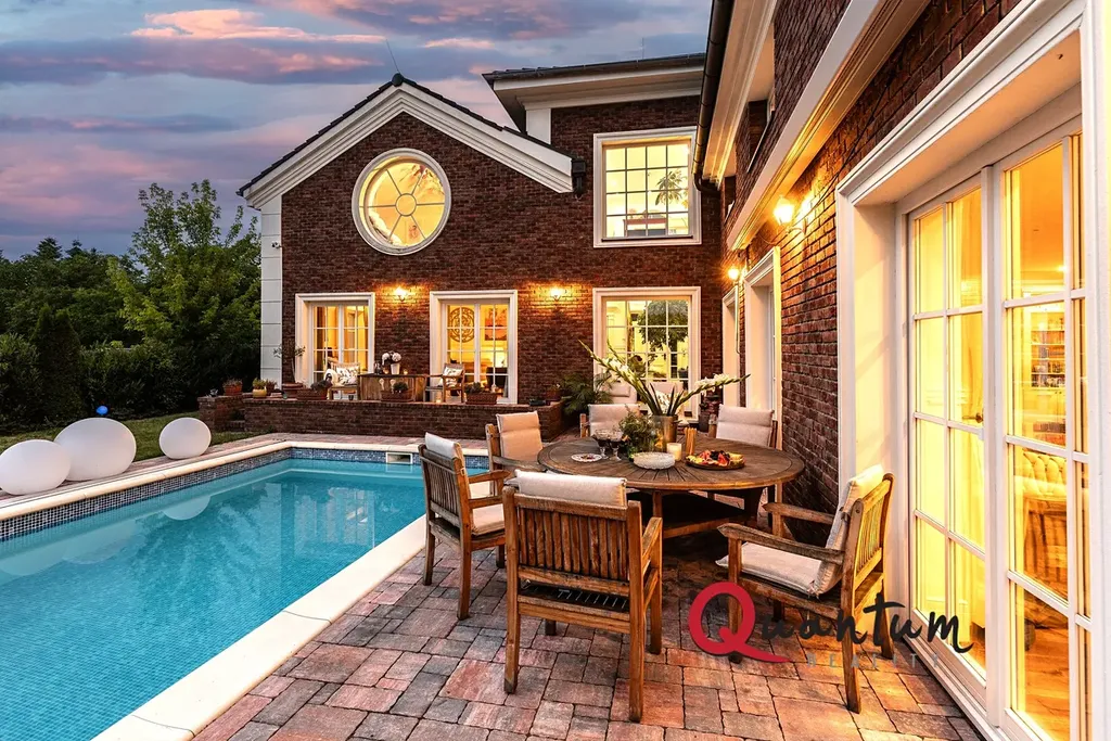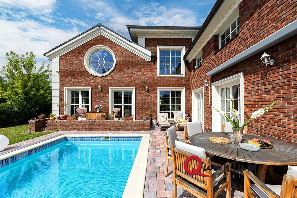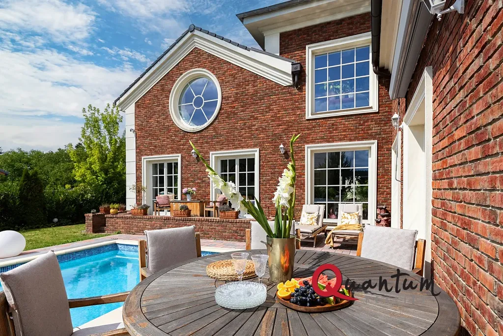 Kvalitní materiály a stylové provedení – fasáda v anglickém stylu, elegantní detaily a propracovaný interiér, který zachovává styl domu.