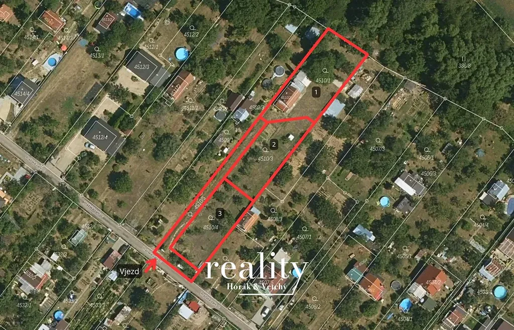Dle katastrální mapy je pozemek rozdělen na 4 části, a to dvě parcely o rozloze 509 m², jedna o rozloze 656 m² a parcela 311 m², by případně sloužila jako společná cesta ke všem jmenovaným parcelám. Tím je pozemek vhodný i pro stavbu dalších 2 rekreačních chat k pronájmu nebo dalšímu prodeji.
