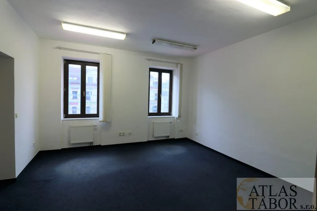 Nabízíme k pronájmu kancelářské prostory umístěné v první patře cihlového domu v centru Tábora, ulice Erbenova, souběžná s OD Dvořák. Jedná se o kancelářský prostor o výměře 23,20 m2 (20,60 kancelář + 2,6 sociální zařízení). Topení - ústřední plynovým kotlem. Vstup do domu je zajištěn přes domácí telefon. Nájemné ve výši 3200,-Kč/měs. ( pro plátce je k nájmu připočteno DPH ve výši 21%) + záloha na služby 1550,-Kč. Majitel požaduje vratnou kauci ve výši dvou měsíčních nájmů + poplatek RK ve výši 4000 Kč + 21% DPH. Pro více informací kontaktujte makléře.