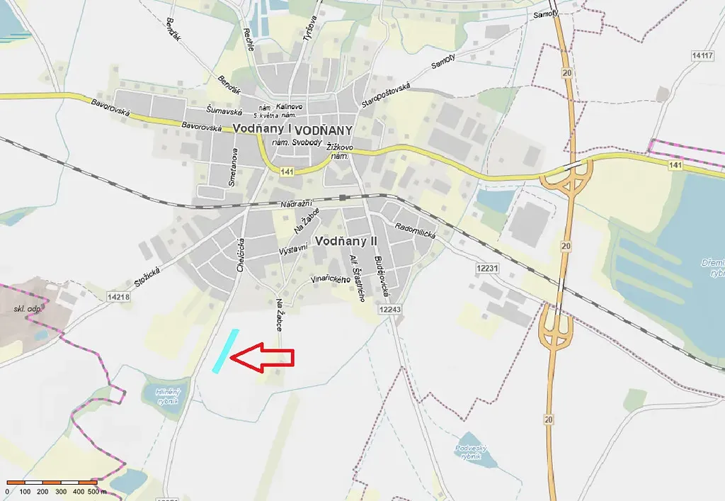 Pozemek je veden jako orná půda o celkové výměře 8 784 m² a tvoří ucelený funkční celek. Velkou výhodou je přímý přístup z komunikace spojující Vodňany a Chelčice, což zajišťuje výbornou dopravní dostupnost a snadnou obslužnost.
