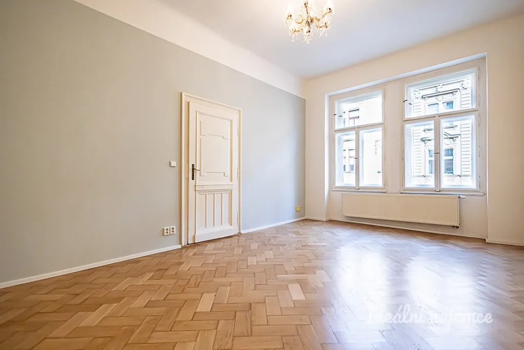 Dům se nachází v historické části Prahy, kde vysoké stropy a dřevěné podlahy jsou samozřejmostí. Byt má dva velmi prostorné průchozí pokoje a separátní kuchyňskou linku, kde krom jiných spotřebičů nechybí ani myčka. Koupelna je vybavena sprchovým koutem a úložným prostorem. Komfort pak nabízí oddělená toaleta.