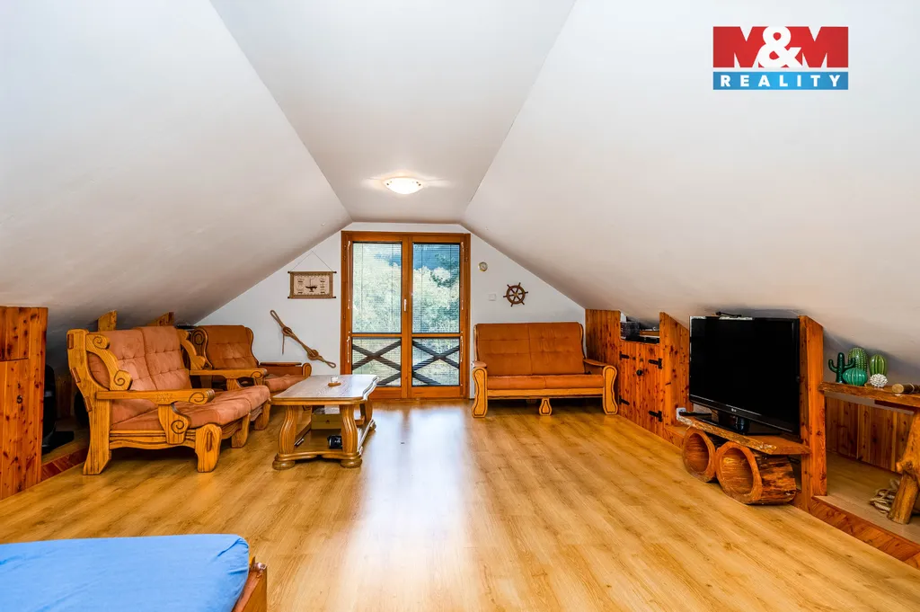 Představuji Vám krásnou chatu v obci Třebenice přímo pod Slapskou přehradou. V přízemí se nachází společenská místnost s kuchyňským koutem a dominantním krbem, který vytápí zároveň první patro, dále je zde koupelna se sprchovým koutem, toaleta a pokoj s výhledem na terasu. V prvním patře je pak velká ložnice s nádherným výhledem do zahrady a klidné zátoky. Nemovitost stojí na vlastním pozemku a okolní rovinatá zahrada o rozloze 220m2 je v nájmu od povodí Vltavy za 6500,-Kč na rok na dobu neurčitou. Přímo u chaty je bezpečná garáž a další dva vozy zaparkujete pohodlně na pozemku. Hledáte místo, kde si odpočinete od každodenních starostí a načerpáte sílu na nový pracovní týden? Jste vášniví rybáři, či houbaři? Pak je toto klidné víkendové místečko právě pro Vás. Rádi Vám též pomůžeme s vyřízením úvěru.