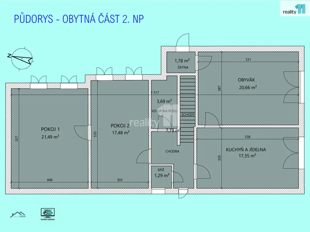 Užitná plocha domu činí 95 m², zastavěná plocha 194 m².