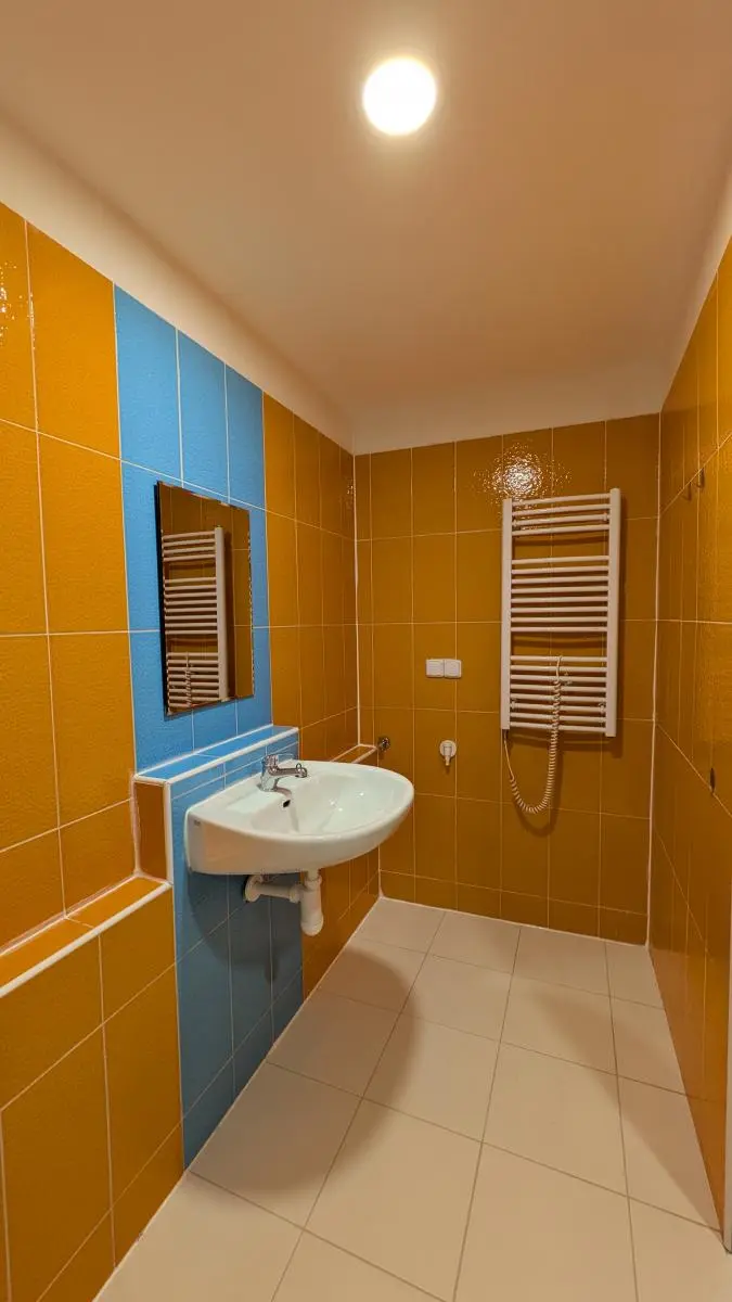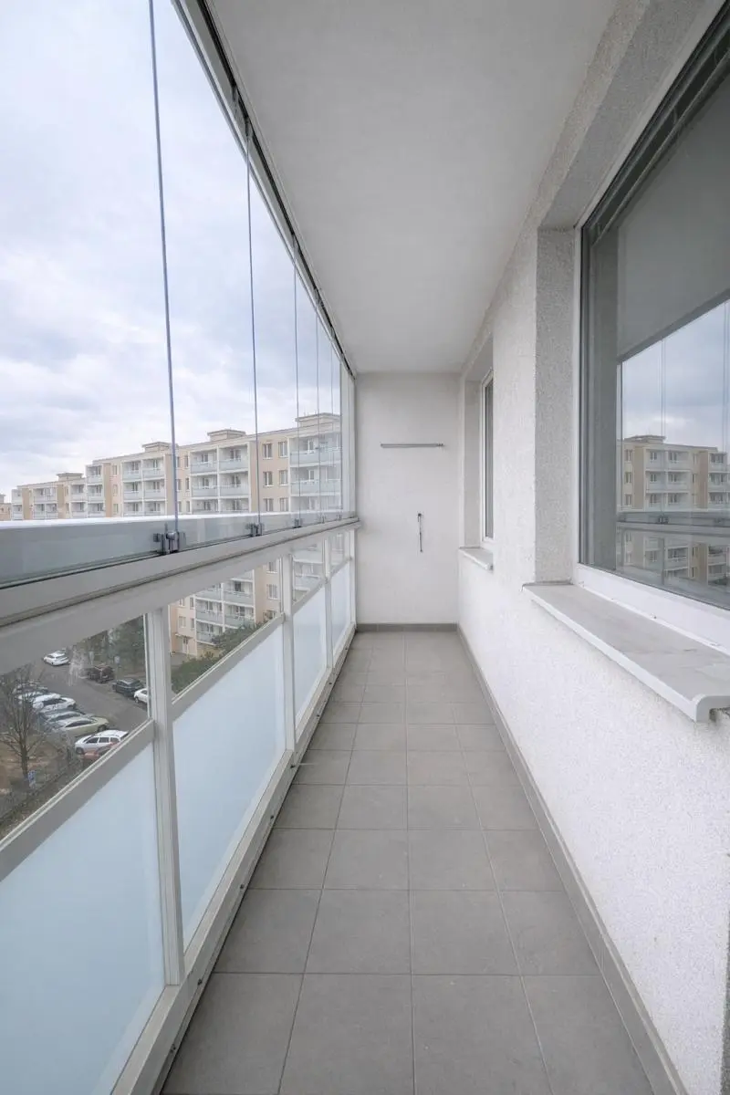 Byt prošel čerstvou rekonstrukcí. V kuchyni je nová kuchyňská linka s elektrickými kamny, varnou deskou, digestoří a myčkou. V koupelně je prostorná vana, umyvadlo se zrcadlem a WC, přípojka na pračku připravena. Z obývacího pokoje vstupujeme na balkon. Součástí bytu je kumbál, který nabízí další prostor k uskladnění věcí a šatna vybavena skříněmi. Místnosti jsou světlé a velice prostorné. K bytu náleží sklep