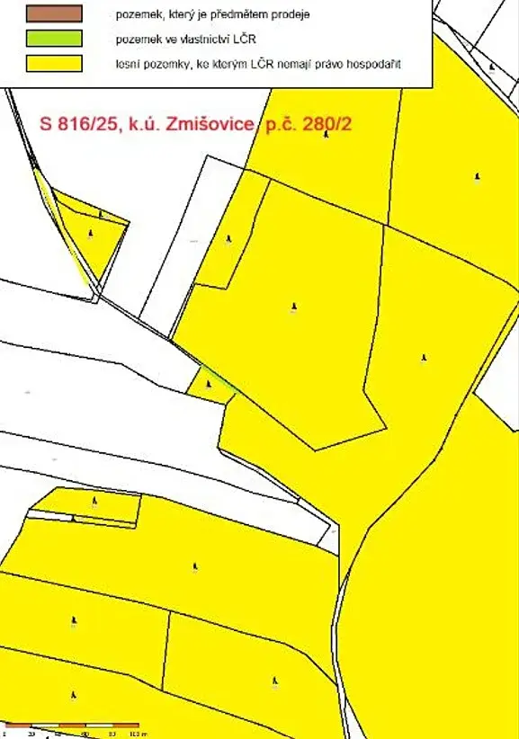 Jedná se o prodej lesního pozemku parc. č. 280/2 o výměře 52 m2 situovaného jižně od obce Zmišovice, obklopeného privátními lesy. Jedná se o bezlesí využívané jako cesta.