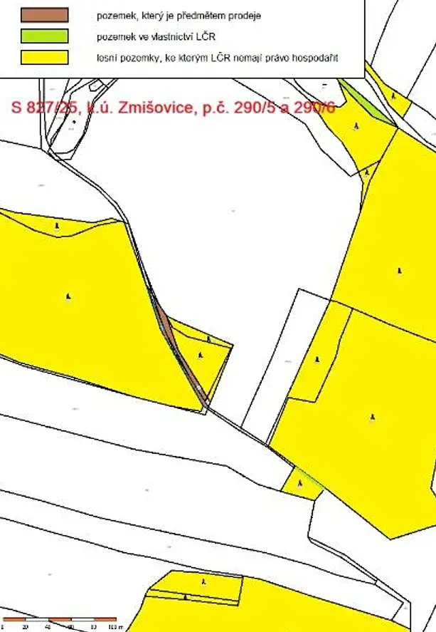 Jedná se o prodej 2 lesních pozemků parc. č. 290/5 o výměře 96 m2 a parc. č. 290/6 o výměře 230 m2, nacházejích se jižně od obce Zmišovice, v komplexu privátních lesů. Oba pozemky jsou bezlesí, zarostlé keři a buření.