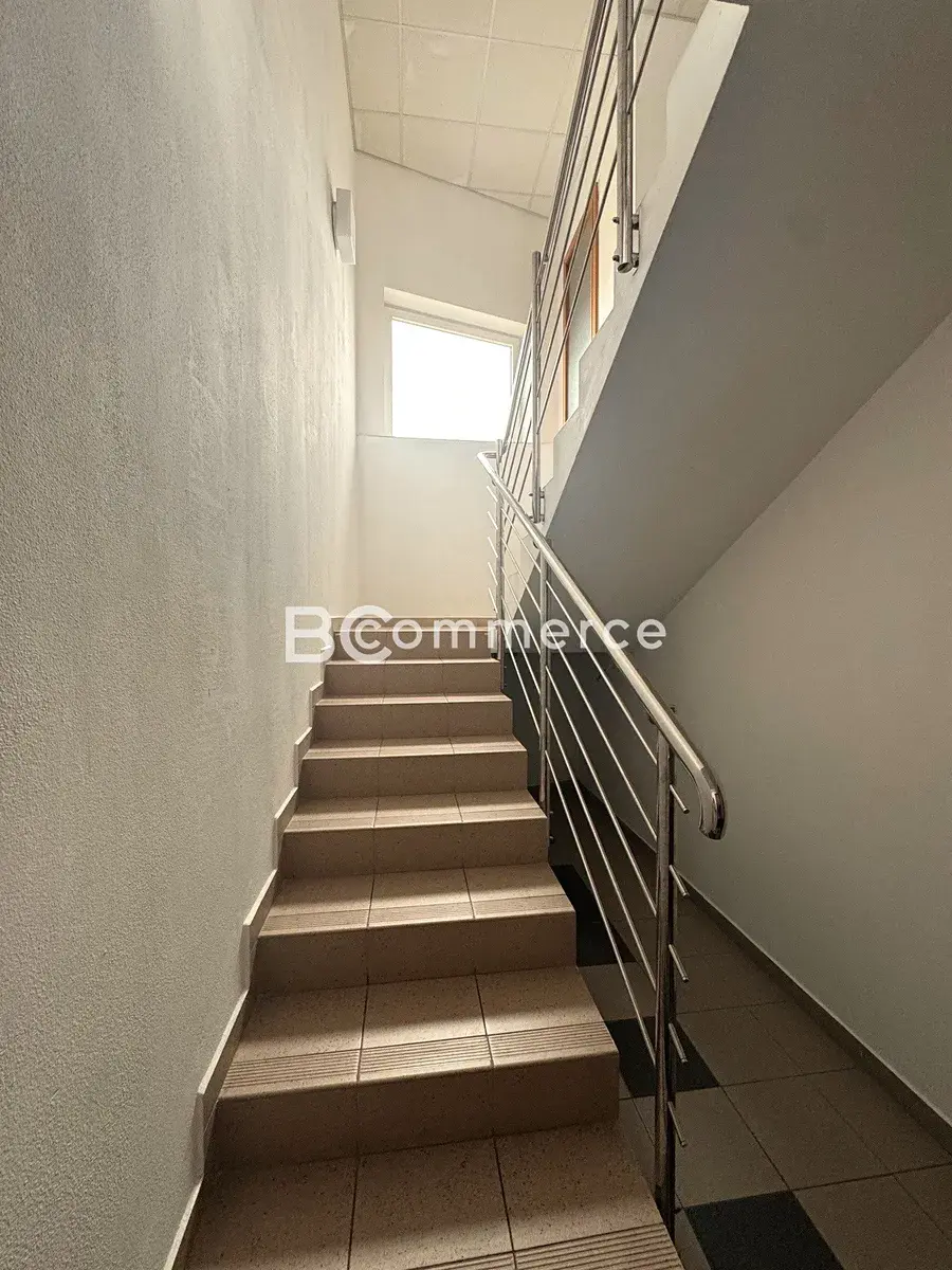 Nabízíme k pronájmu samostatný moderní dvoupodlažní kancelářský objekt s parkováním přímo u objektu. V přízemí o velikosti 77m2 se nachází velká klimatizovaná kancelář, která je vzhledem k umístění přímo u vchodu vhodná jako showroom, jednací místnost apod. Kancelář má přípravu na kuchyňku, v přízemí jsou dále umístěny wc a sprchy.